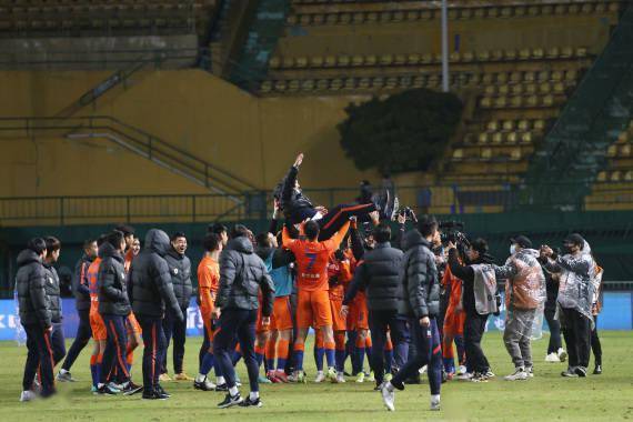 山东泰山队球员在比赛后庆祝。新华社记者 张丽芸 摄