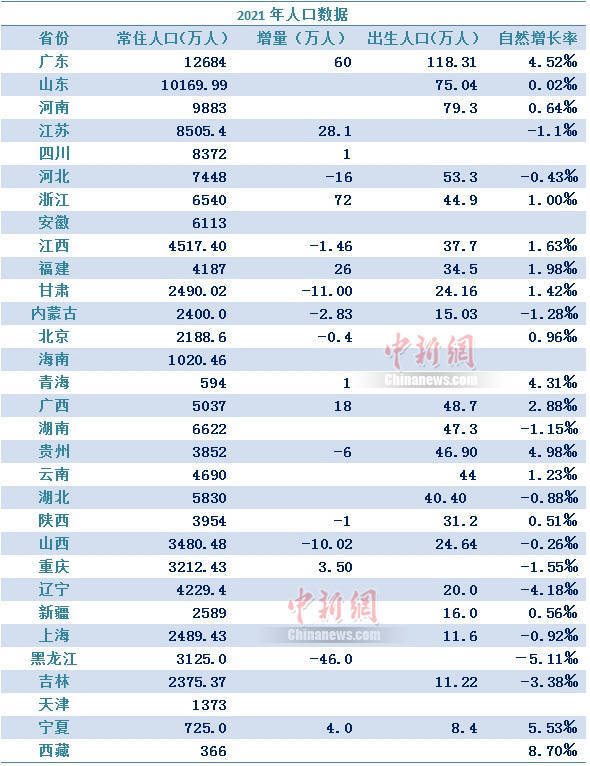 中国新观察|盘点31省份人口:广东最能生,东北继续负增长