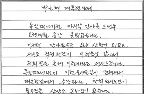 崔顺实狱中写给朴槿惠的书信(《朝鲜日报》)