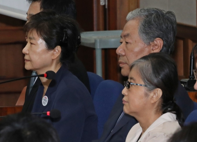 2017年,65岁的朴槿惠与61岁的崔顺实并肩受审(资料图)
