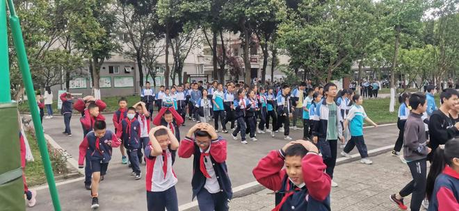 崇州市羊马镇羊马学校师生收到地震预警后疏散