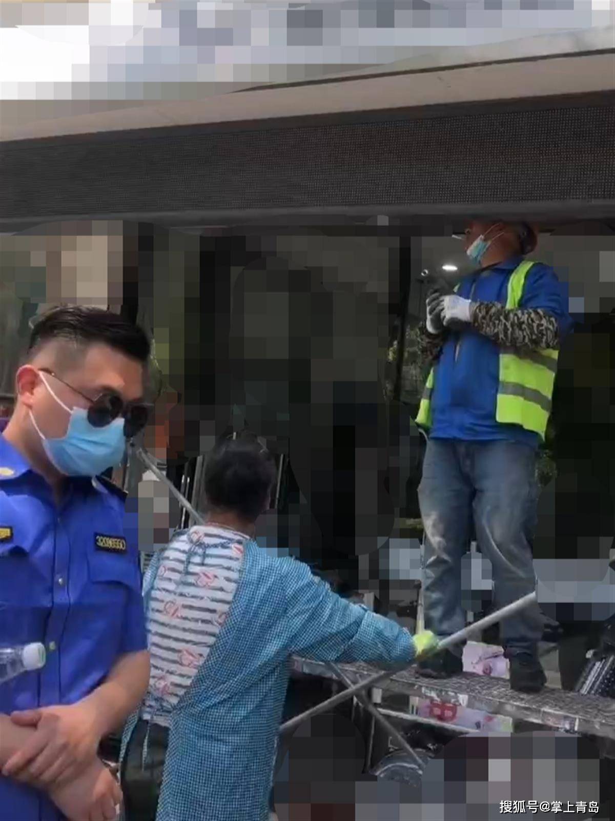 工人正在拆除商铺的LED跑马屏(受访者提供视频截图)