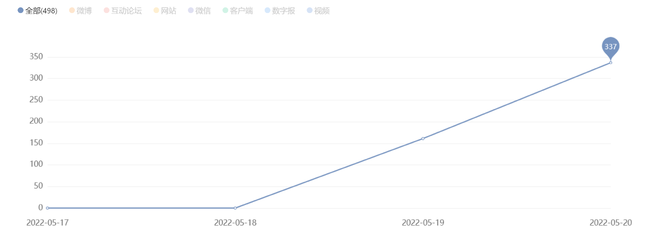 以2022年5月17日0时至5月20日16时为周期,通过中国文化传媒集团舆情系统进行信息检索发现,监测周期内的舆情高点出现于5月20日。
