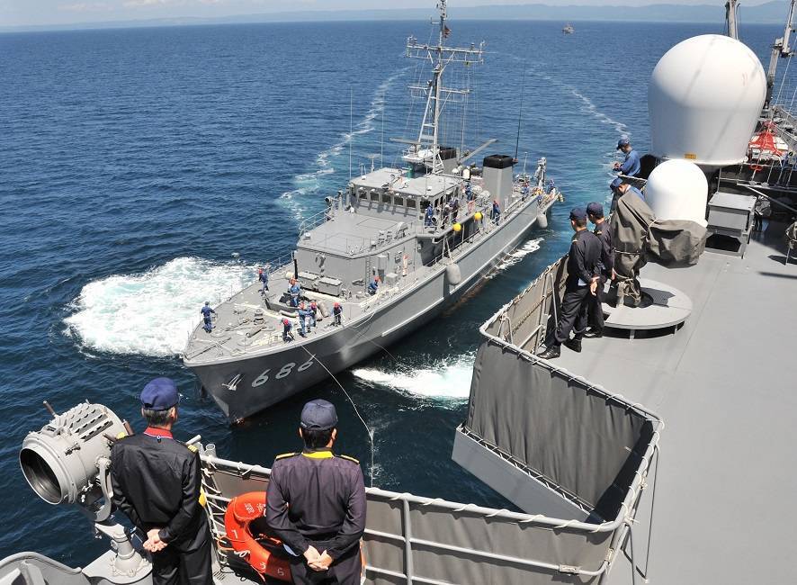 对于对马海峡方向的舰艇编队,海上自卫队派出了佐世保基地第3导弹艇队的隼型导弹艇PG-826“大鹰”、下关基地第43扫海队菅岛型扫雷艇MSC-686“宇久岛”以及厚木第4航空群的P-1反潜巡逻机进行情报搜集与跟踪监视活动。
