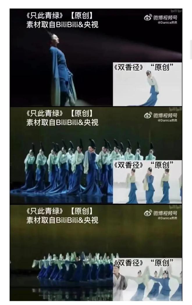 在发现《只此青绿》被抄袭后,有网友拿出了两段舞蹈做对比:
