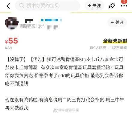 六一儿童节即将来临,肯德基推出的儿童节套餐玩具之一可达鸭玩具在全网爆火。不仅多家肯德基门店玩具断货,二手市场还出现了“代吃”和炒作高价的现象。据武汉晨报消息,肯德基客服表示,网上高价出售可达鸭音乐盒属个人行为,与公司无关。并称,公司不会将赠品单独出货卖给“黄牛”,目前不确定网上出售的可达鸭的货源。