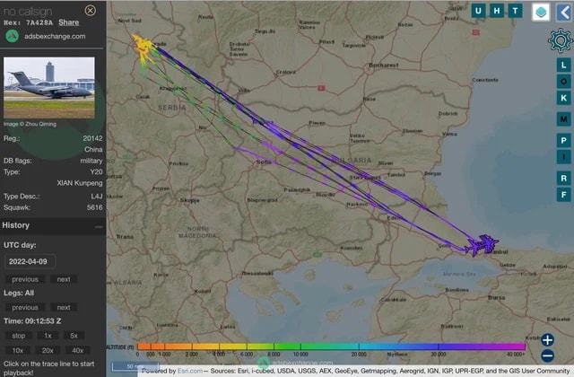 4月11日再次前往贝尔格莱德的运-20运输机 图源:社交媒体