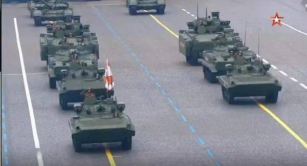 当军乐队演奏完庄严的《胜利日》,军事装备方队开始通过红场。