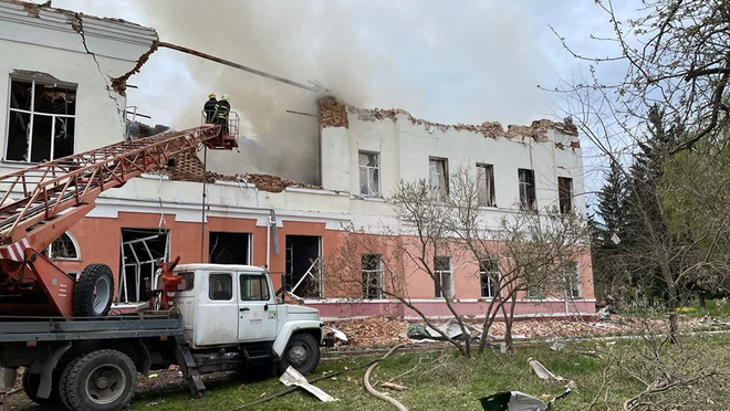 报道称,事发后,当地紧急服务机构在社交媒体发布声明称,俄军攻击“学校与寄宿学校”。声明称,炮轰时间在午夜过后不久,事发现场的学校“因遭炮轰”而起火燃烧。紧急服务机构还发布一段视频,画面可见建筑物遭到严重破坏,似乎只剩外墙仍然耸立。影片中还可以看到被毁坏的游乐场,以及悬挂在破碎窗户上的乌克兰国旗碎片。