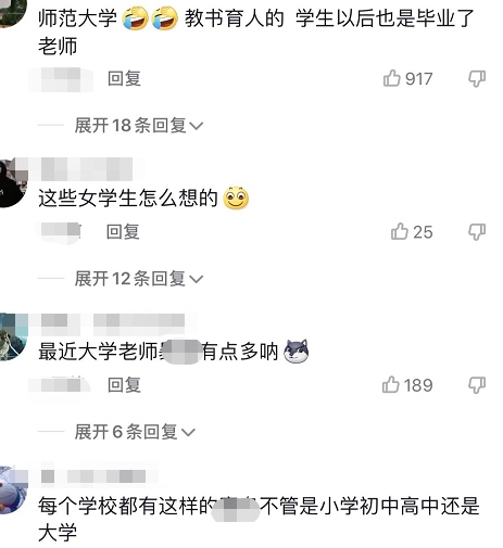 还有的网友说师范大学本身就是培养教师的地方,将来教书育人的,师范院校能出这样的“人才”,真是令人刮目相看。