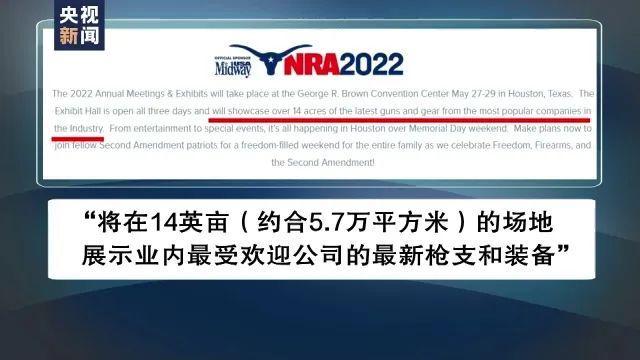 美国全国步枪协会的官网显示,其第151届年会将于5月27日至29日在休斯敦举行。其间将有不少政客到场讲话,并且“将在14英亩(约合5.7万平方米)的场地展示业内最受欢迎公司的最新枪支和装备”,还有“娱乐项目和特别活动”。官网简介将这次年会称为“庆祝自由、枪支和宪法第二修正案”。