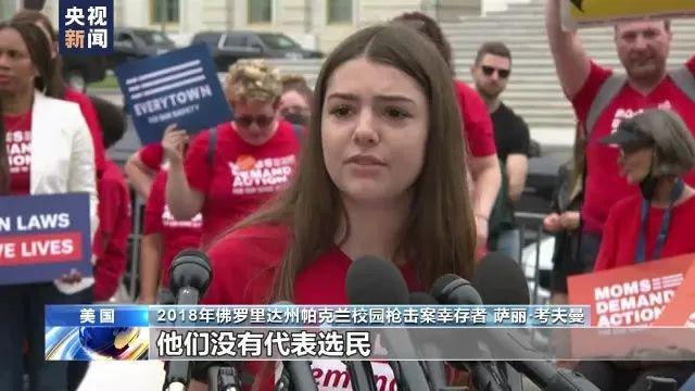 2018年佛罗里达州帕克兰校园枪击案幸存者 萨丽·考夫曼:真可耻,那些议员们承诺保护我们。但是他们现在与枪支游说团体的联系,比以往任何时候都要紧密。真可耻,他们没有代表选民。超过90%的美国人支持背景调查。但是这些议员们却决定将政治置于儿童和他们所代表的民众之上。