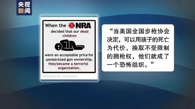 导致21人死亡的罗布小学大规模枪击事件于24日发生在得克萨斯州尤瓦尔迪市,而极尽讽刺的是,就在仅仅3天后,也就是27日,在仅四小时车程外的休斯敦,美国全国步枪协会如期举行年会。