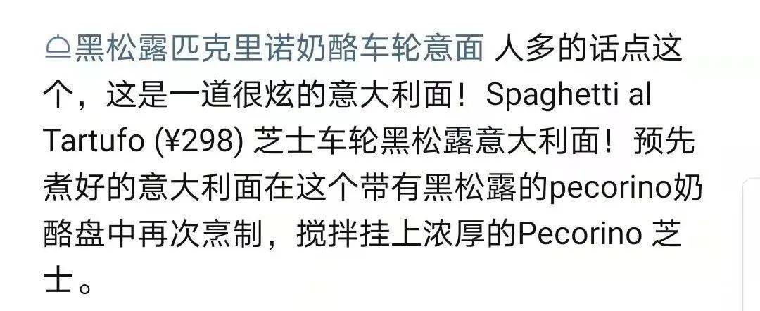 根据大众点评上食客的介绍, 这道菜品售价298元,厨师会现场将意大利面放到奶酪盘中为客人进行烹制。