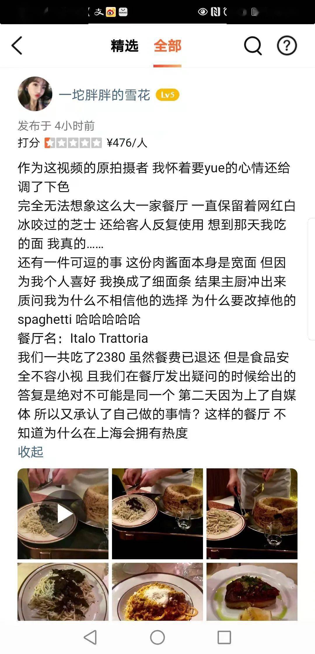 12月29日,有网友爆料称在该西餐厅用餐时,点了店内的特色菜品“黑松露匹克利诺奶酪车轮意面”,吃到了一块“被咬过”的芝士,疑似与网红视频中为同一块。