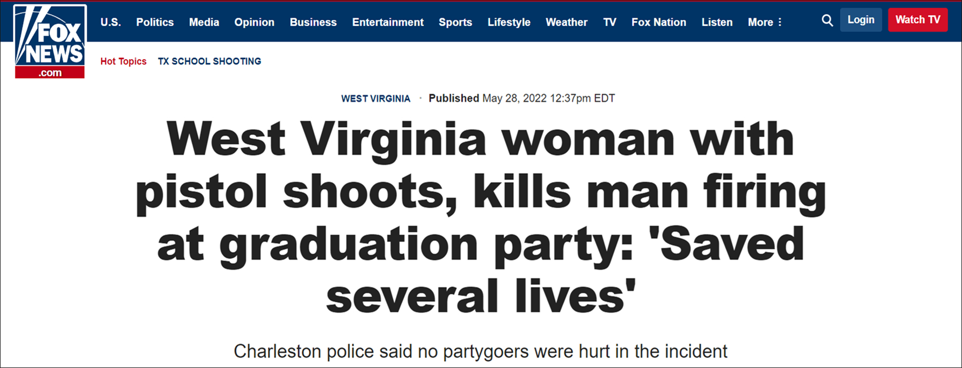 据福克斯新闻(Fox News)28日报道,事后,当地警方赞扬了该女子的举动,并表示不会对这名女子提出指控。除了枪手身亡外,此次案件未造成其他人员伤亡。