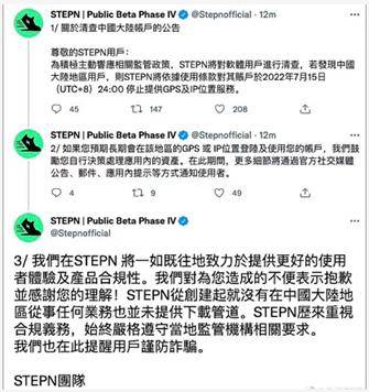 目前尚不清楚STEPN清退中国大陆用户是否是基于该监管政策。