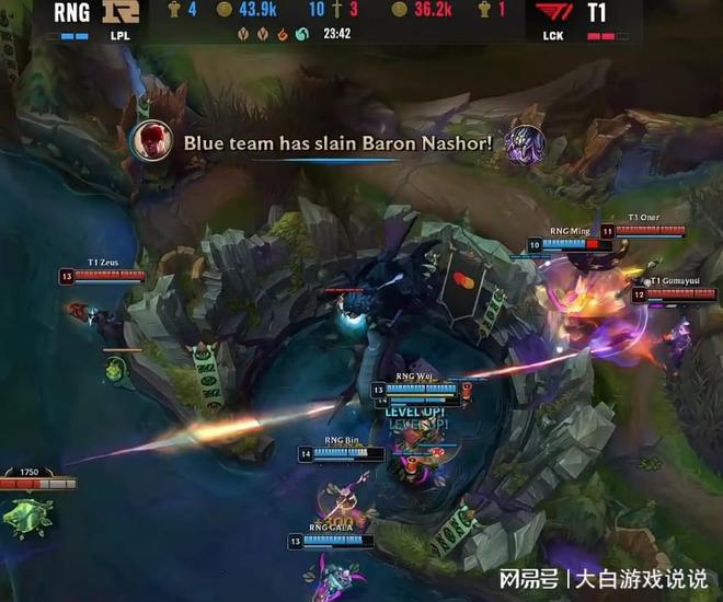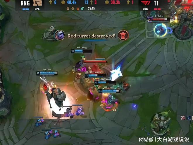 23:42 盲僧顺利拿到大龙,随后RNG全员安全撤退。这把比赛T1陷入较大劣势。