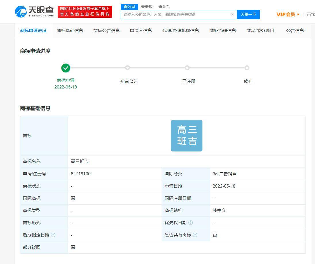 天眼查App显示,近日,广州王老吉大健康产业有限公司申请注册多个高考相关商标,包括“高三班吉”“万试大吉”“超吉发挥”“科科加吉”“语文大吉”“数学大吉”“英语大吉”等,国际分类为广告销售、啤酒饮料等,目前商标状态多为等待实质审查。