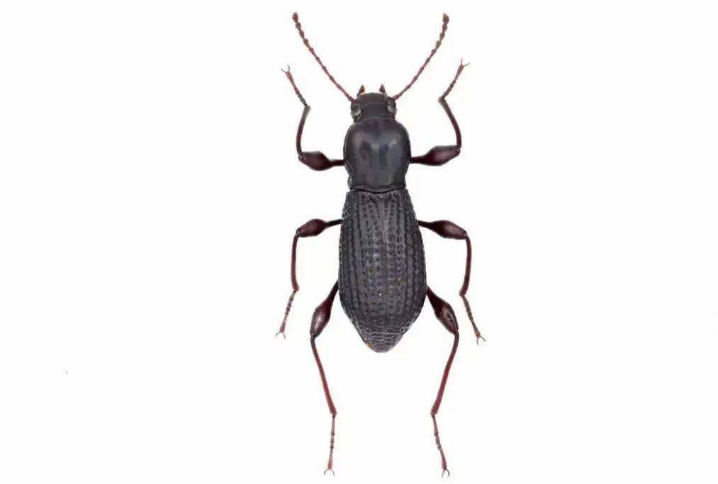 天宝岩肿腿迷甲为昆虫纲鞘翅目拟步甲科昆虫,体长约16mm,体型扁平,雌虫黑色而雄虫暗棕色。头部较小,与前胸密接。口器发达,上颚大。触角11节。前胸背板发达,侧缘沟薄而深。成虫夜间在树干上活动,白天则隐藏在树下或树皮中很难找到。该甲虫是福建永安天宝岩管理局在实施 “天宝岩国家级自然保护区昆虫多样性调查”科研项目过程中,由项目科研团队芙蓉生物研究院在天宝岩保护区开展科考调查时发现并命名的新物种。该新物种的发现,为世界增添了一笔科学财富,进一步丰富了生物的多样性,对于生态保护和生物进化研究,都具有十分重要的理论价值和现实意义。