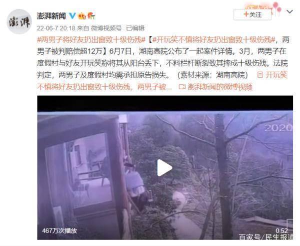 两男子将好友扔出窗外致十级伤残是怎么回事