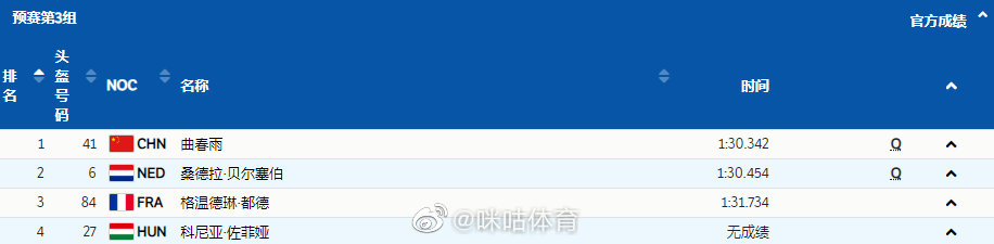 @曲春雨_cc 1分30秒342,小组第一晋级
