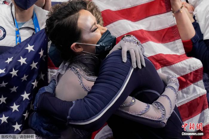 2月7日,美国花滑选手乔克和贝茨(右)热情相拥。