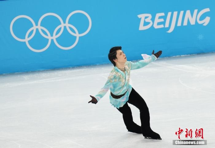 2月10日,日本花滑选手羽生结弦在男子单人滑自由滑比赛中。中新社记者 崔楠 摄