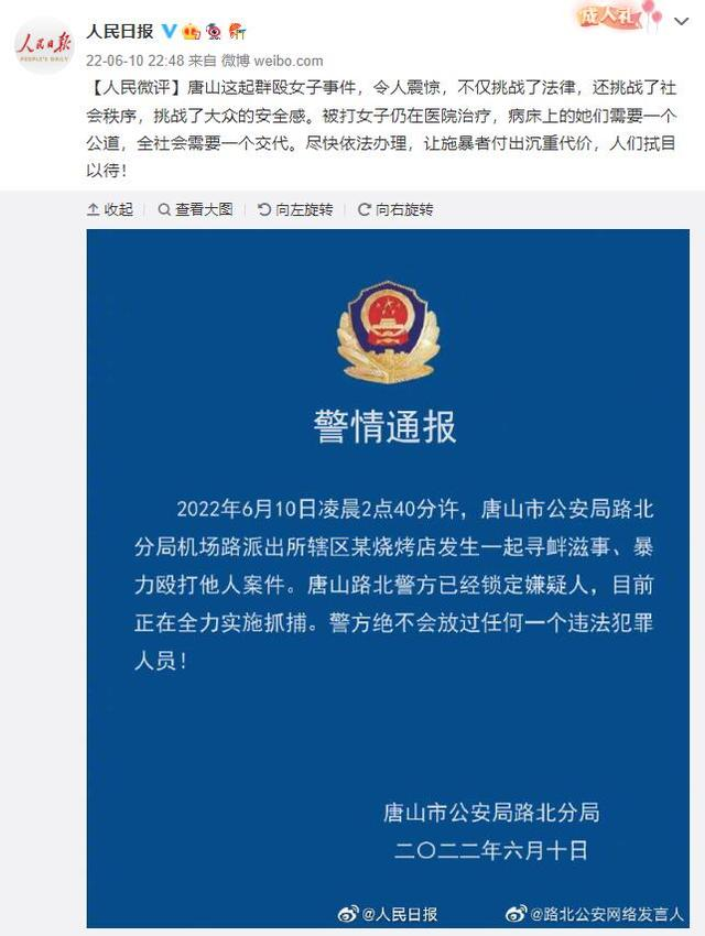 唐山发生群殴女子事件 人民微评:病床上的她们需要一个公道,全社会需要一个交代