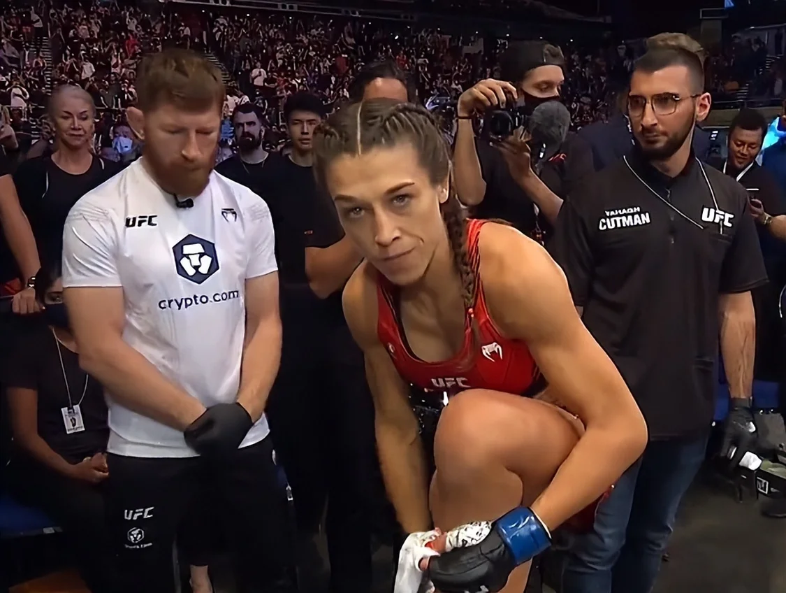 首先,乔安娜登场,为了这场比赛,乔安娜备战了长达5个月!赛前,她眼神坚定,UFC历史上,她是第一位波兰籍冠军。