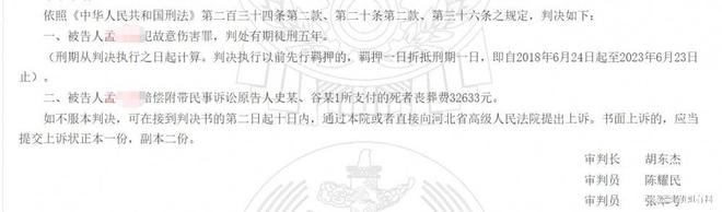 一审判决,孟某犯故意伤害罪,判处有期徒刑五年。同时孟某还要赔偿谷某家人丧葬费32633元。