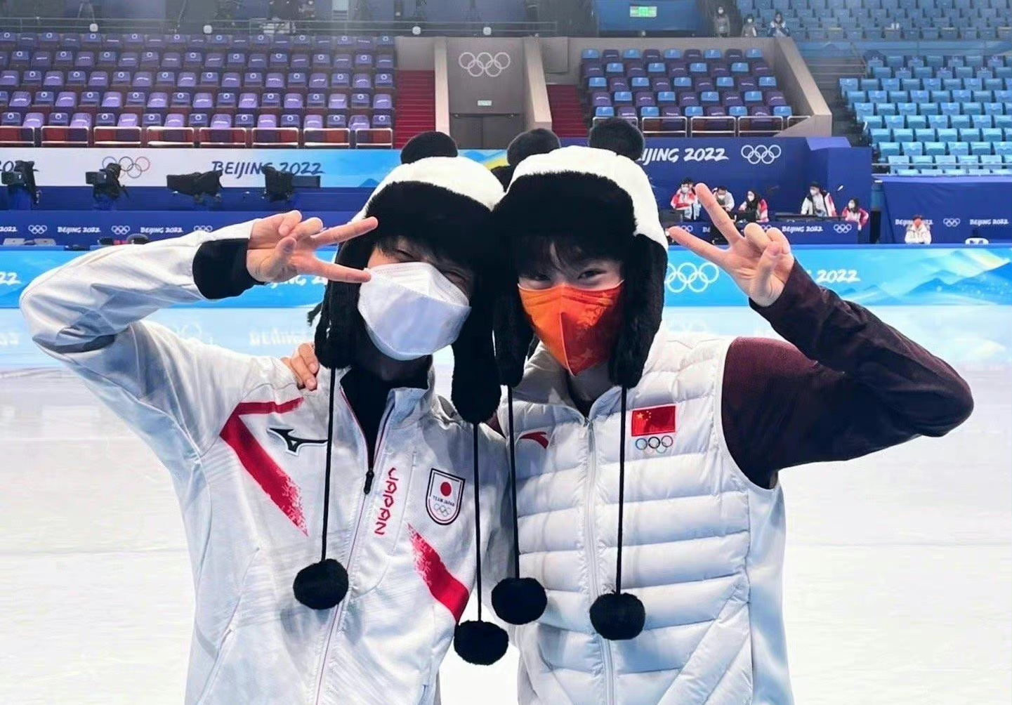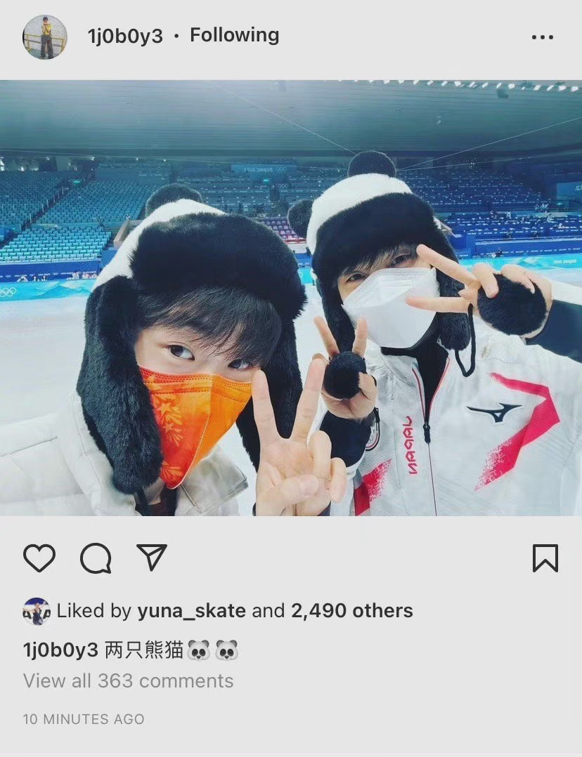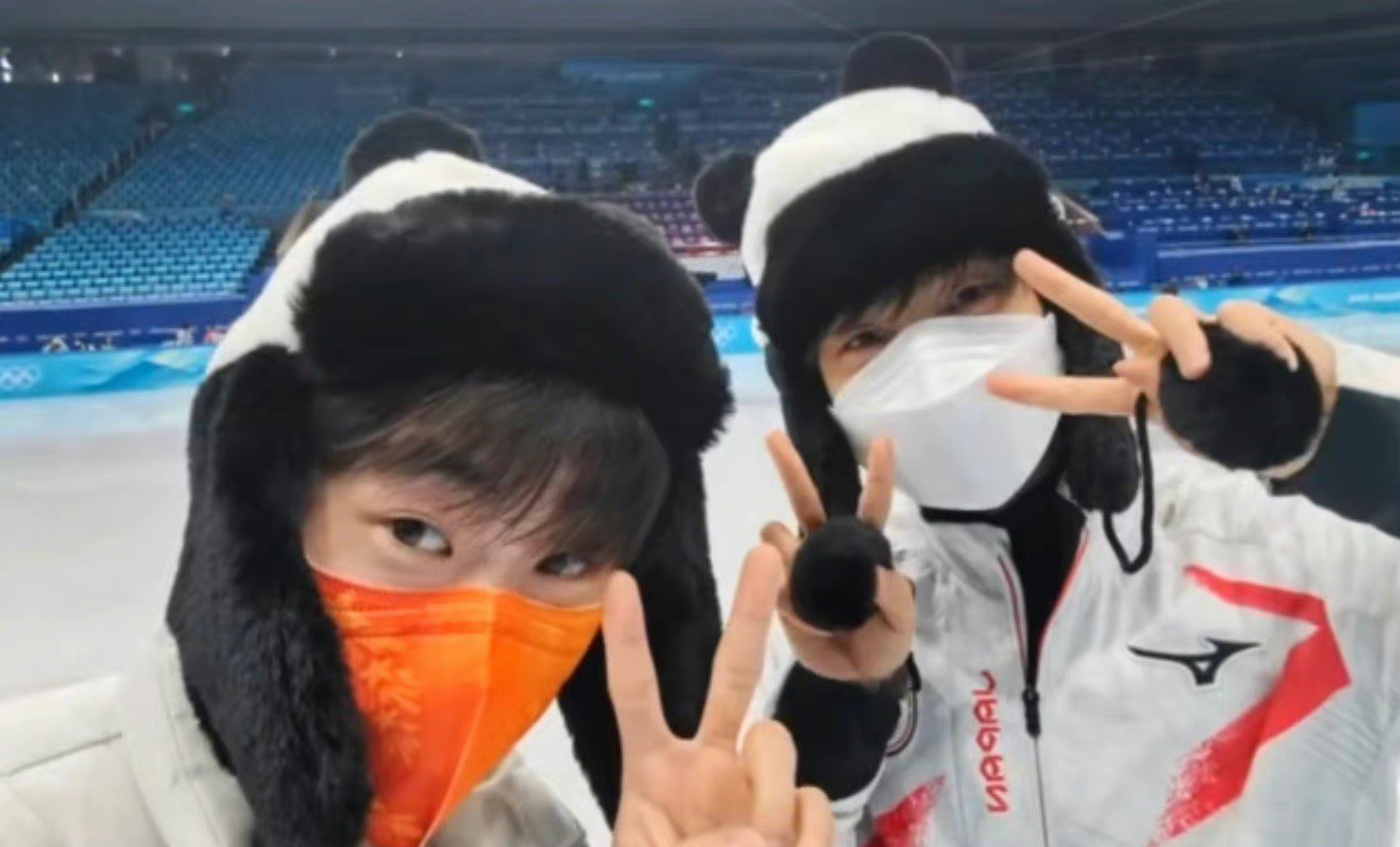 羽生结弦和金博洋戴冰墩墩帽子合照,两个小可爱!!好想拥有同款冰墩墩帽子,柚子和金博洋[赢牛奶]#羽生结弦戴了冰墩墩帽子#