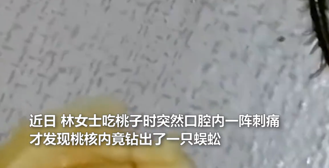 近日,江苏林女士食用前一天没吃完的桃子时,突然口腔内一阵刺痛,才发现桃核内竟钻出了一只蜈蚣。一夜过后,林女士因嘴唇肿胀并伴有麻胀痛前往医院就诊。目前经过抗过敏治疗,病状已有所好转。