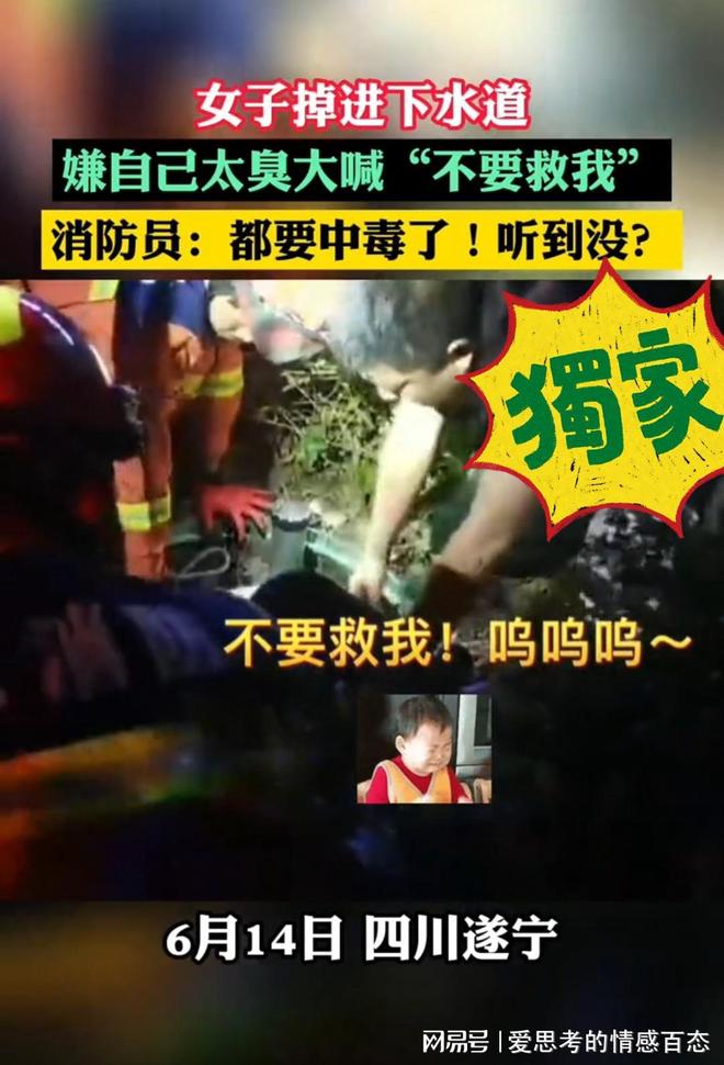 6月14日晚,四川,一女子醉酒失足掉进下水道,因嫌自己身上太臭而拒绝救援,该女子的哥哥在旁边极力劝导。最终,在消防员的帮助下,女子被成功救出。