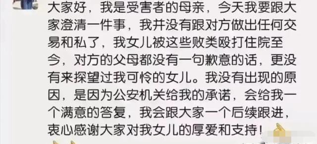 不过,这两天,一张自称受害者妈妈留言的截图在网上流传。
