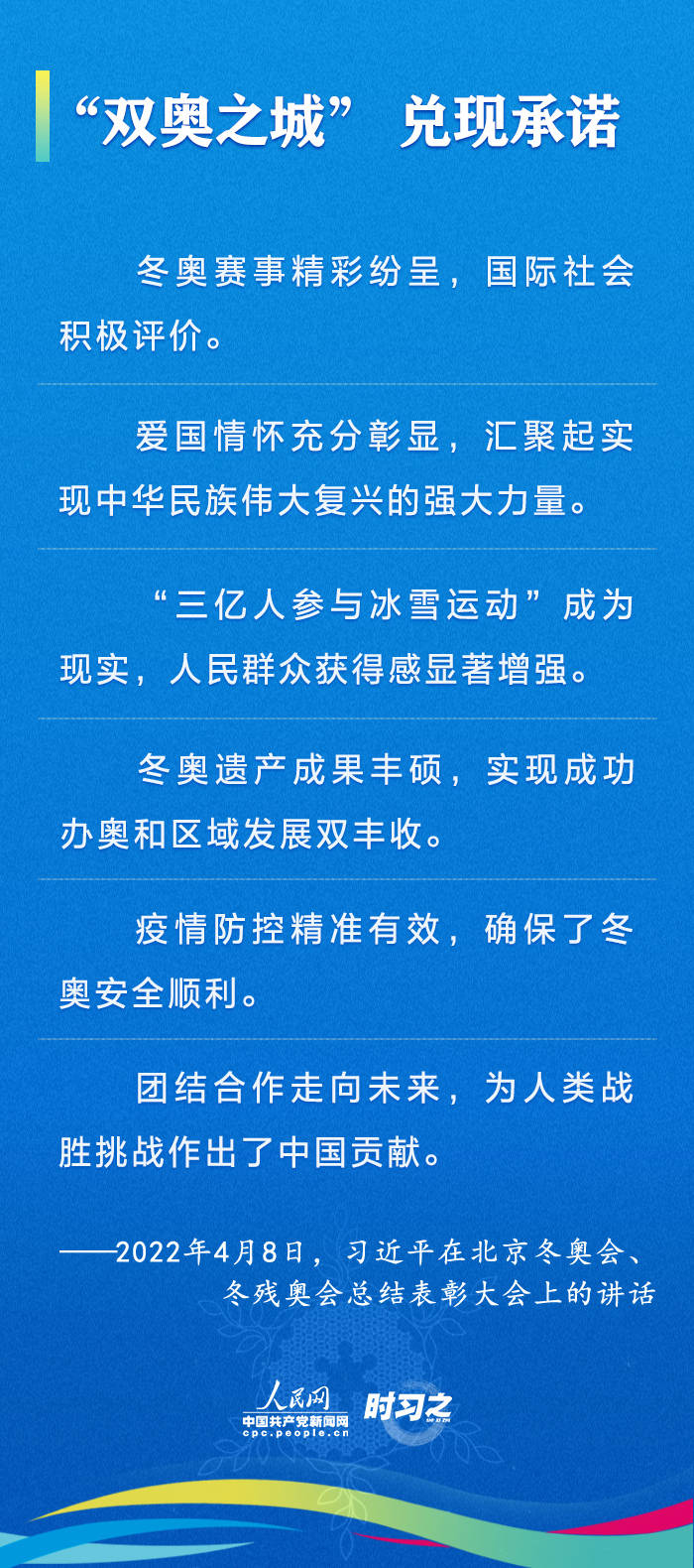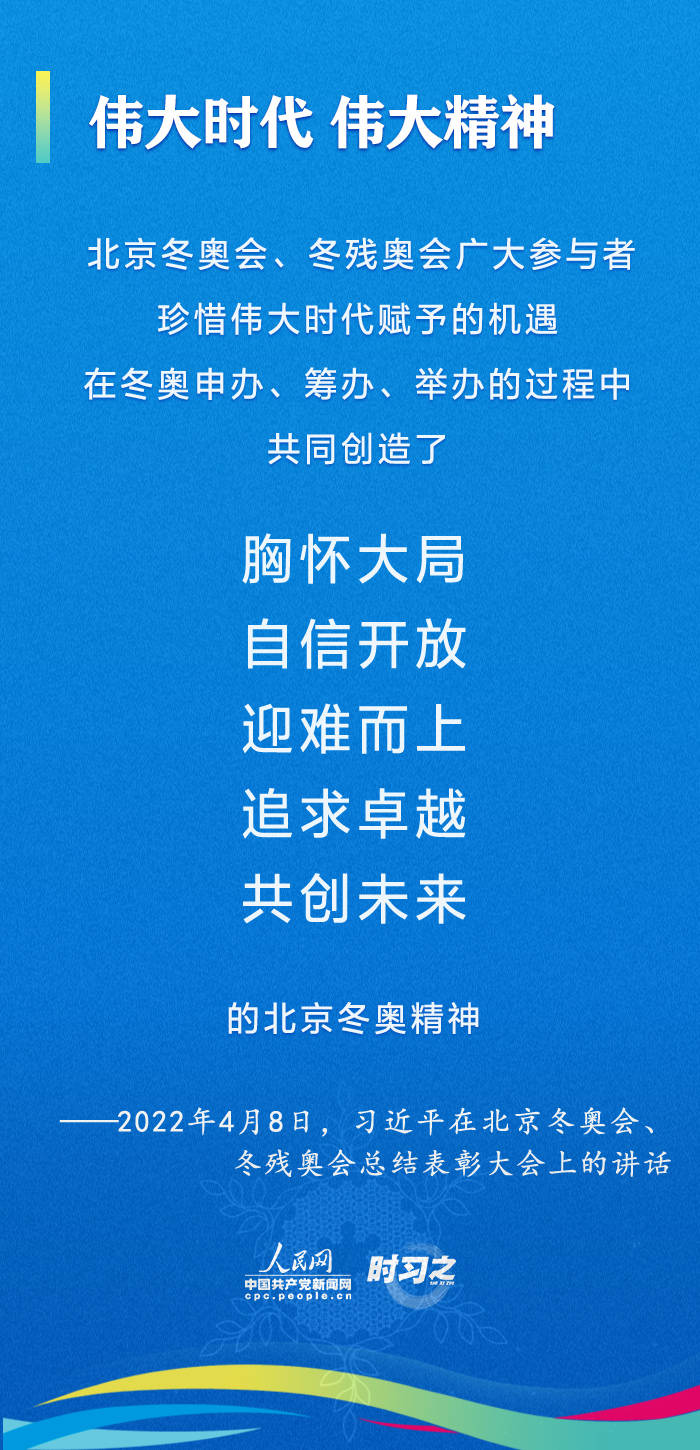 4月8日,北京冬奥会、冬残奥会总结表彰大会在人民大会堂隆重举行。中共中央总书记、国家主席、中央军委主席习近平出席大会并发表重要讲话。他强调,我们要大力弘扬北京冬奥精神,以更加坚定的自信、更加坚决的勇气,向着实现第二个百年奋斗目标奋勇前进,向着实现中华民族伟大复兴的中国梦奋勇前进。