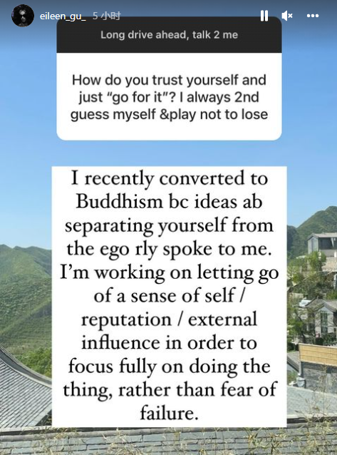今日凌晨,谷爱凌在个人动态中回答网友的问题,当谈到了信仰的时候,谷爱凌表示自己最近转变信仰佛教。