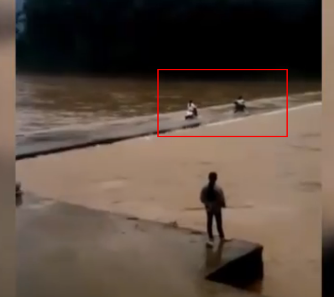 近日,广西河池,因为近日连续下雨,导致当地水位升高,这座小桥中间一段已经被大水淹没。有两名女生,骑电动车强行通过一座已被洪水漫过的桥时,发生意外,不幸双双落入洪水。目前一人已被救起,另一人仍在搜救中。