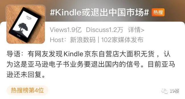 今天上午,“Kindle或退出中国市场”的词条登上微博热搜。有网友爆料称国内的“Kindle”有些异常,官方自营店的Kindle产品大面积缺货,认为这是亚马逊电子书业务要退出国内的信号。