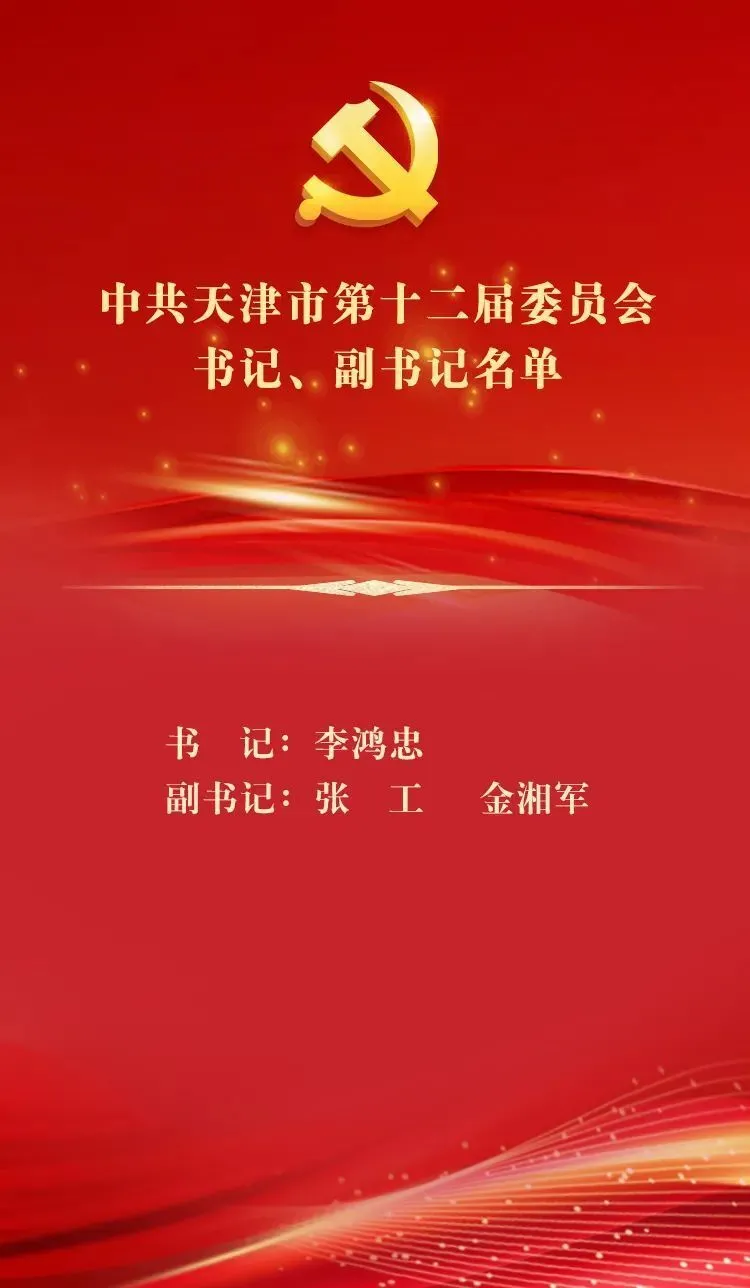 据天津发布6月20日消息,李鸿忠当选天津市委书记,张工、金湘军当选副书记。