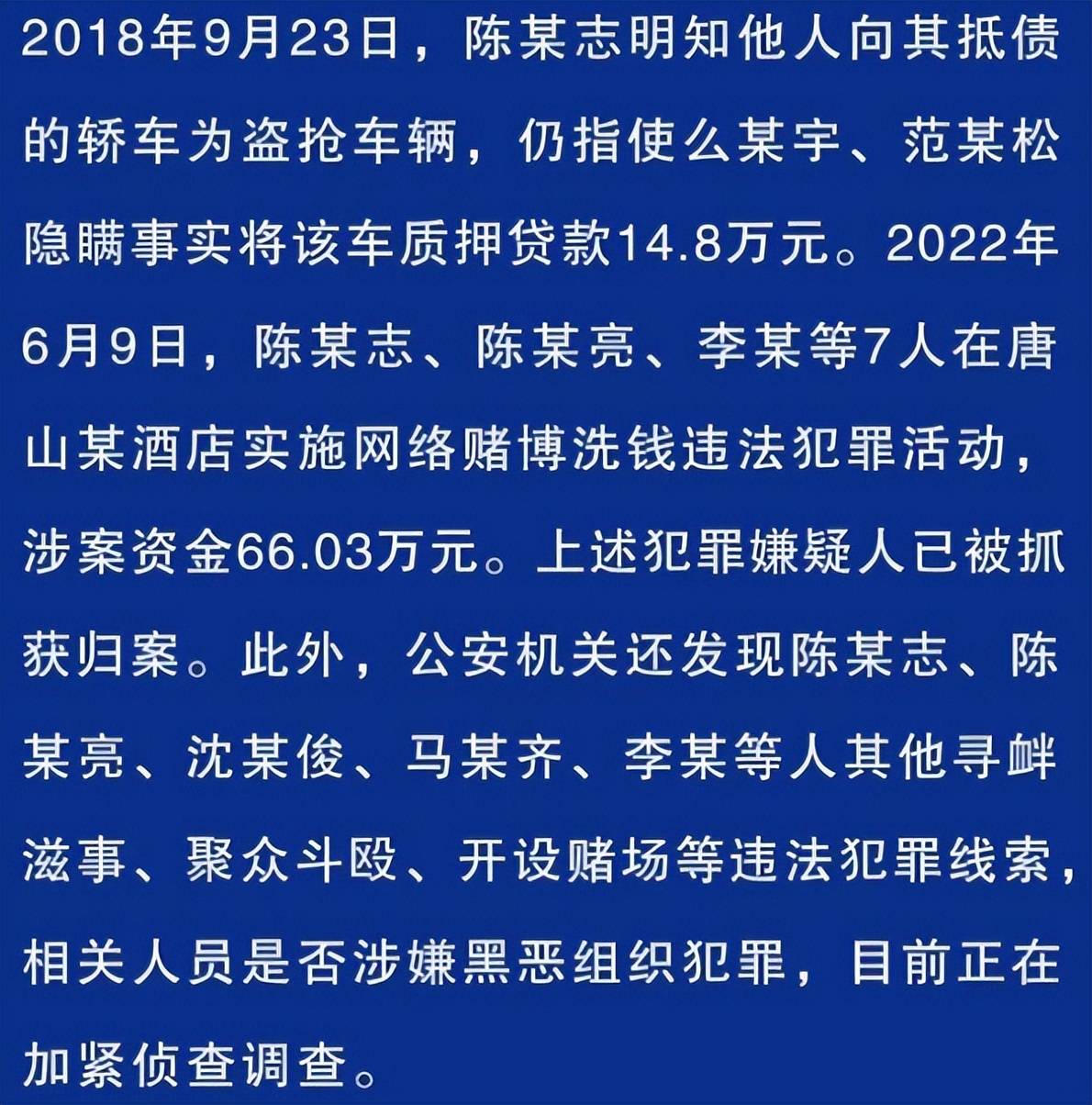 6月21日,河北相关部门通报唐山烧烤店打人案侦办最新进展,被打的女孩2人鉴定为轻伤(二级)、2人为轻微伤,主犯陈某志等另涉及非法拘禁、开设赌场、洗钱、聚众斗殴等违法犯罪行为。