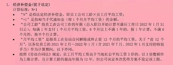 协议的员工,上述优待方案将不再适用,公司只支付经济补偿金。具体金额以2月10日实际转账金额为准。