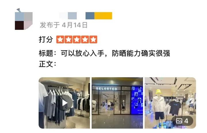 大众点评上最新的一条评论是4月中旬,提到了品牌的防晒服