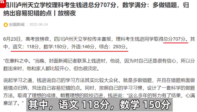 这名学生来自四川泸州天立学校,当得知自己的分数后,考生的表现让人想不到,他表现得极为淡定,并未像其他考生那般激动,这是为何?意料之中,很清楚个人水平。