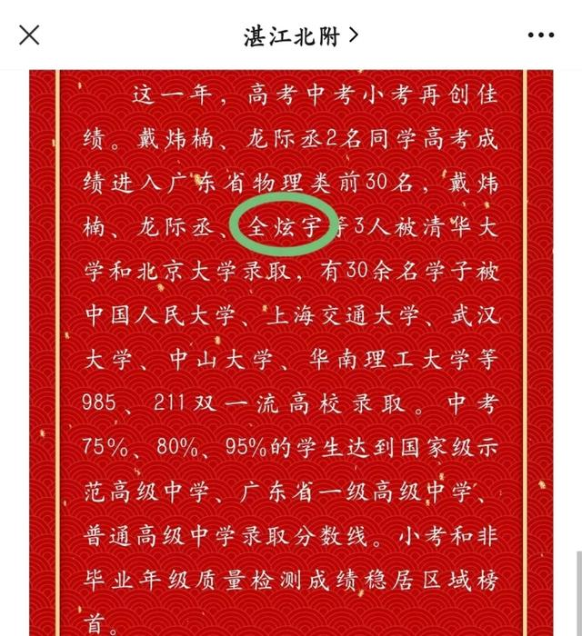网传截图显示,喜报发布者为广东省茂名化州市青鸟实验学校。该校学生全炫宇在今年的高考中,凭借694的高分斩获茂名市高考状元,考上北大。备注信息显示,全炫宇在2020年就考上了北大,2021年在湛江一民校复读,再度考上北大。前后三年间,该名学生三次考上北大,状元奖励金额累计200万元。据此,不少网友质疑,该名学生是“职业考生”,收了钱为相应的学校“出战”考北大。