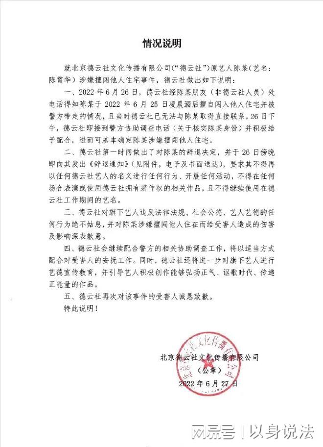 换而言之,陈某将被刑事处罚,基本上是跑不掉的了,不仅如此,其公司在明确其行为已经触犯法律的情况不明,已经第一时间发表声明,对其作出辞退处理的决定。这也是其违法的代价之一。