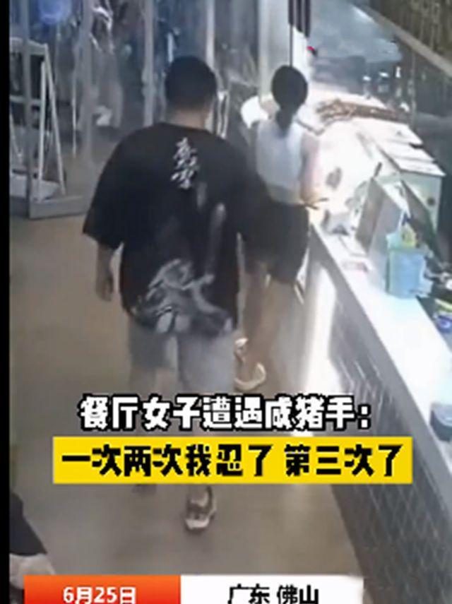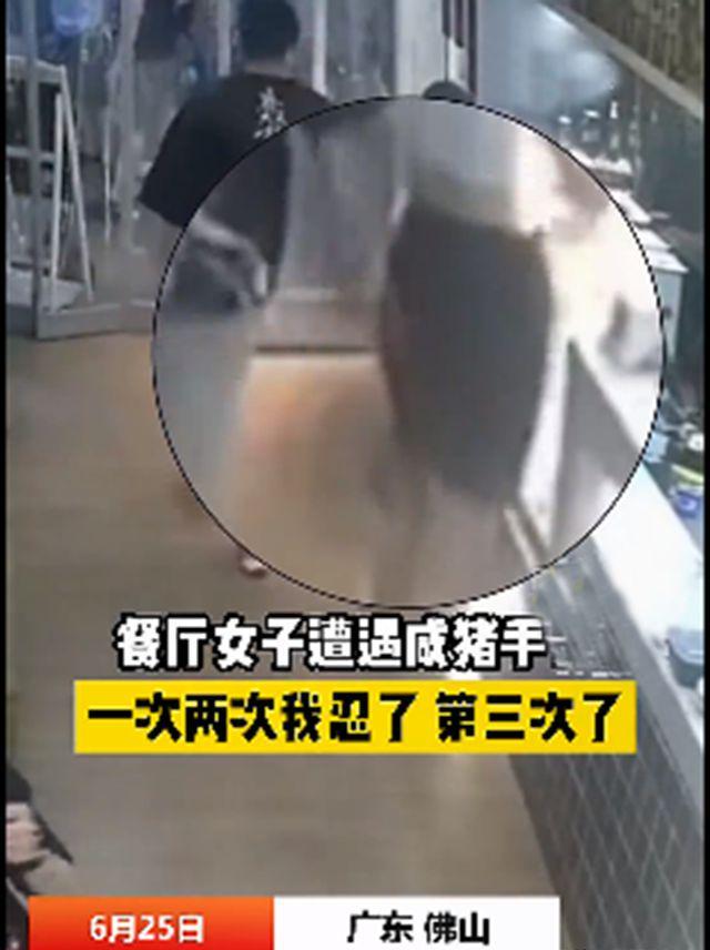 在广东佛山,一家餐厅里,一个咸猪手,摸一个女孩的臀部多达三次,前两次女孩忍了,表示可以理解,想忍忍就过了,谁能知道,这咸猪手得寸进尺,第三次,女孩终于忍无可忍,出手教训了这个咸猪手。