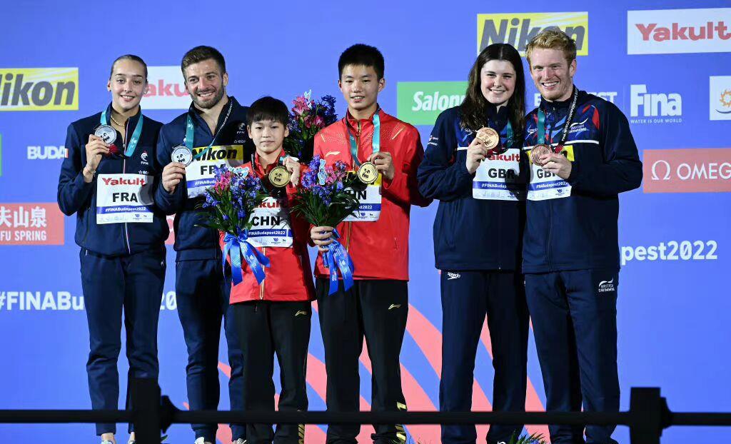 女子10米跳台是奥运会正式项目,本届世锦赛设置个人和双人两枚金牌,在之前结束的女子个人10米跳台决赛,中国队包揽冠亚军,陈芋汐夺金,全红婵获得银牌,后来全红婵搭档白钰鸣夺得混合全能冠军,这也是中国跳水队在世锦赛的第100枚金牌,全红婵世锦赛首金。