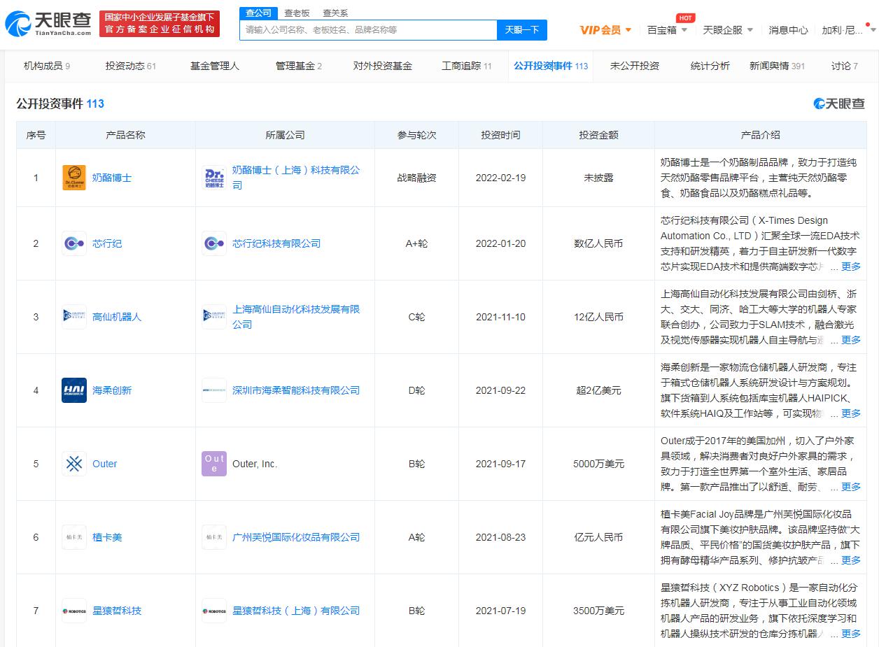 公开信息显示,徐新于2005年创立今日资本,参与多起投资,她本人也被称为中国“风投女王”、“中国女巴菲特”。天眼查APP显示,今日资本公开投资事件达上百起,主要投资行业包括零售、消费品、医药、互联网等,投资的知名企业有京东、美团、唯品会、携程、叮咚买菜、三只松鼠(25.950, -0.70, -2.63%)、知乎、蔚来等。