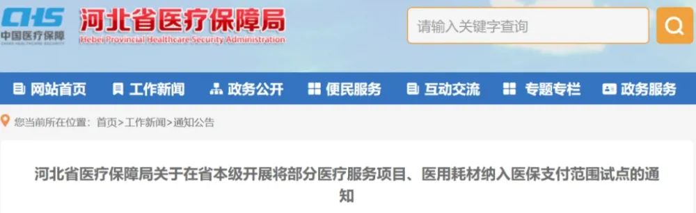 3、河北省:50项医疗服务项目和242类医用耗材纳入医疗保险支付范围